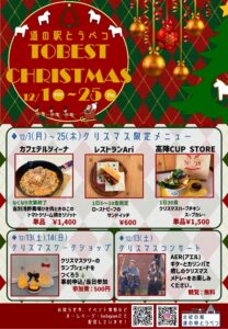 いよいよ、クリスマスシーズン! 道の駅とうべつも、クリスマスツリーをライトアップし、館内がクリスマス一色になっています! 12/1(月)~25(木)は、テナントからクリスマス限定メニューを販売。 また、13(土)、14( […]