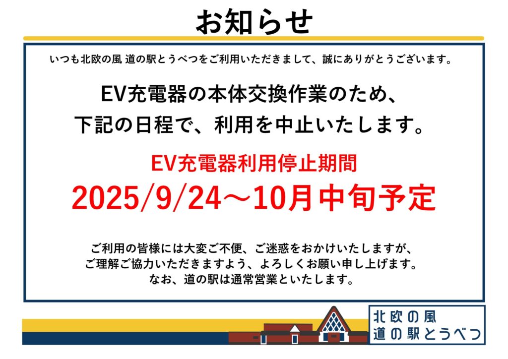 3. 9/24~10月中旬頃までEV充電器本体交換のため使用できません。