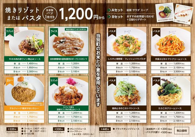 道の駅とは思えない本格創作イタリアンは、当別産の季節の素材が随所に活かされ大満足。名物の焼きリゾットをたのしんで。
